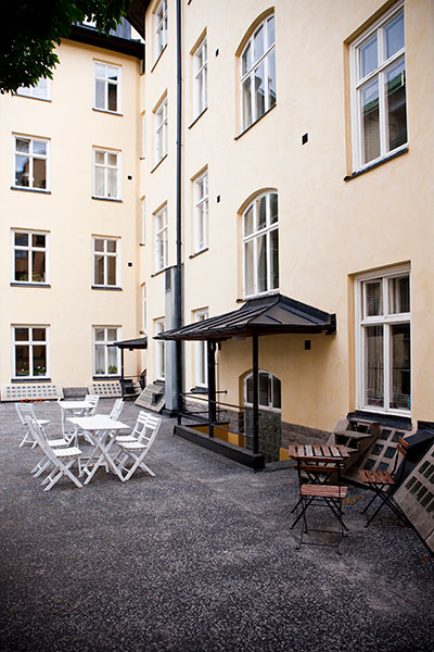 Trapphusen renoverades 2014. Den övre bården i entrén på Södermannagatan 16 är en del av den ursprungliga målningen och har gett inspiration till den övriga färgsättningen.